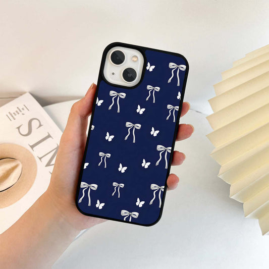 White butterflies With Bows Glass Case