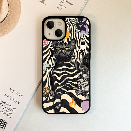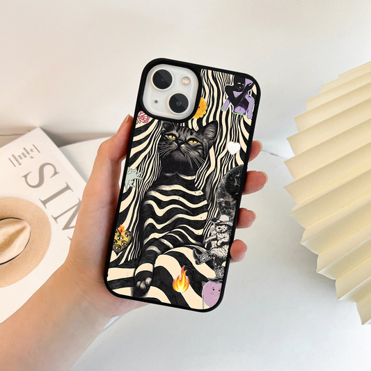 বিক্রয়Wide-Eyed Black Cat Glass Case
