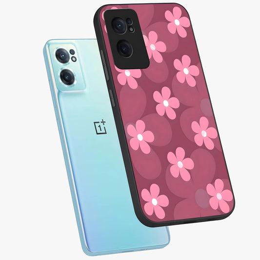 Pink Daisy Flower Pattern Glass Case for OnePlus Nord Ce 2 |1+Nord Ce 2
