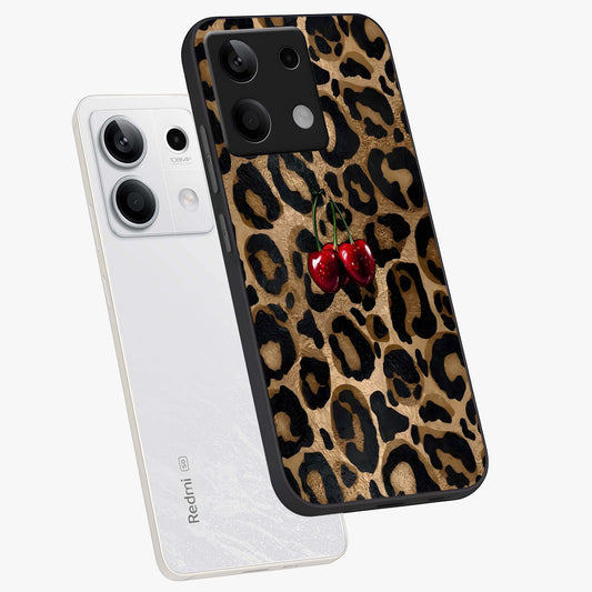 Leopard Wild Cherry Glass Case For Redmi Note 13 5G