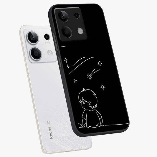 Line Art Boy With Shooting Stars Glass Case For Redmi Note 13 5G