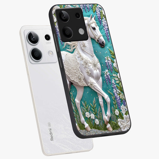 Majestic Floral Stallion Glass Case For Redmi Note 13 5G