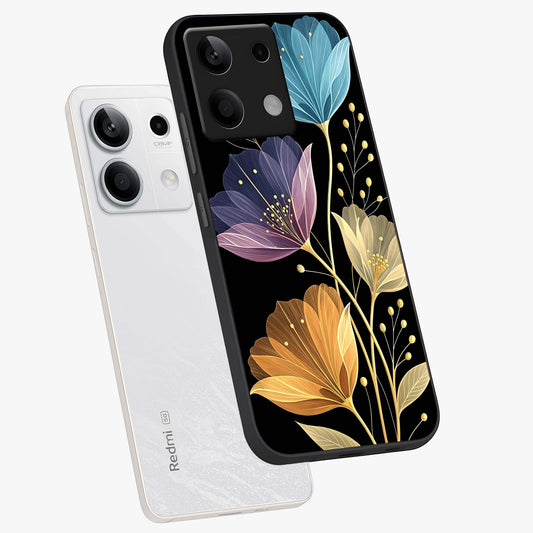 Delicate Multicolor Flowers Glass Case For Redmi Note 13 5G