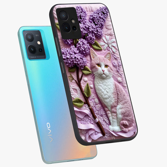 Lavender Cat Whimsy Glass Case For Vivo T1 5G