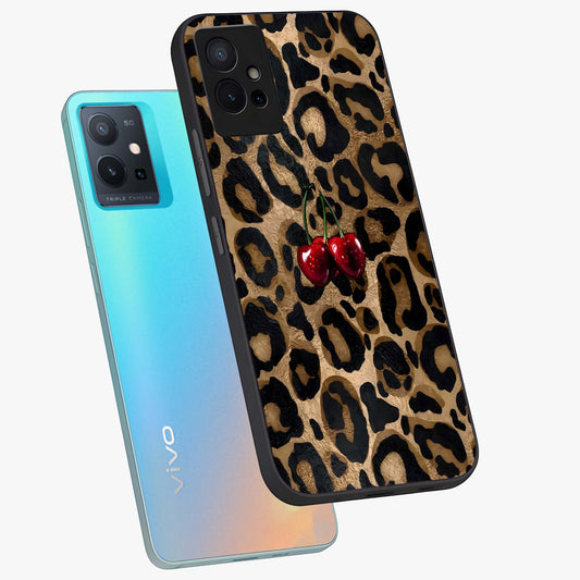 Leopard Wild Cherry Glass Case For Vivo T1 5G