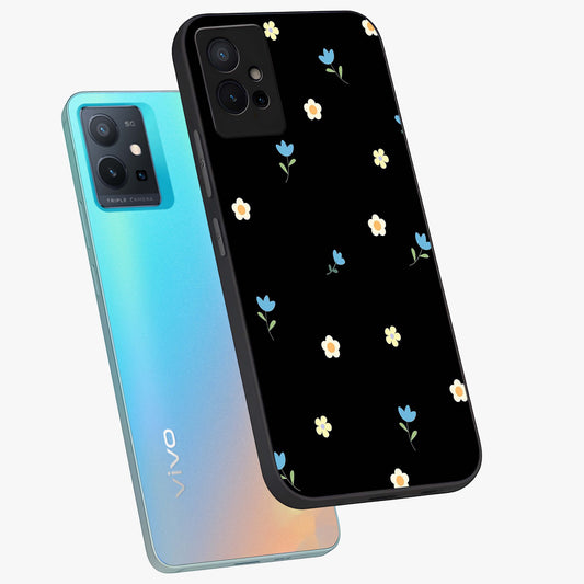 Noir Bloom Elegance Glass Case For Vivo T1 5G
