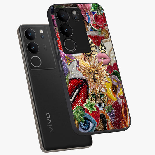 Beaded Fashion Jungle Glass Case For Vivo V29 Pro