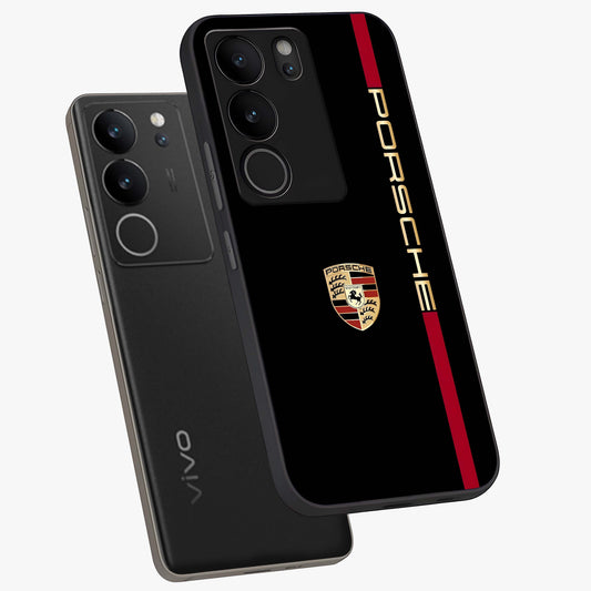 Black Minimal Porsche Glass Case For Vivo V29 Pro