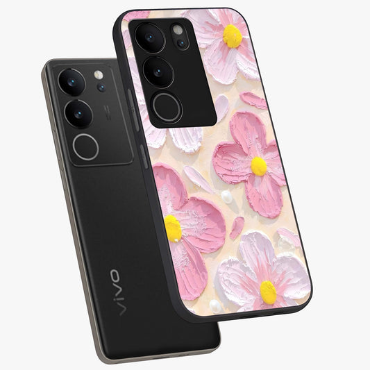 Blush Bloom Texture Glass Case For Vivo V29 Pro