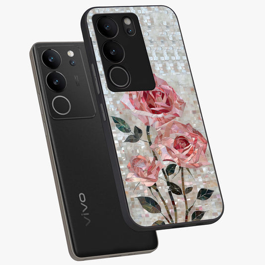 Blush Mosaic Bloom Glass Case For Vivo V29 Pro