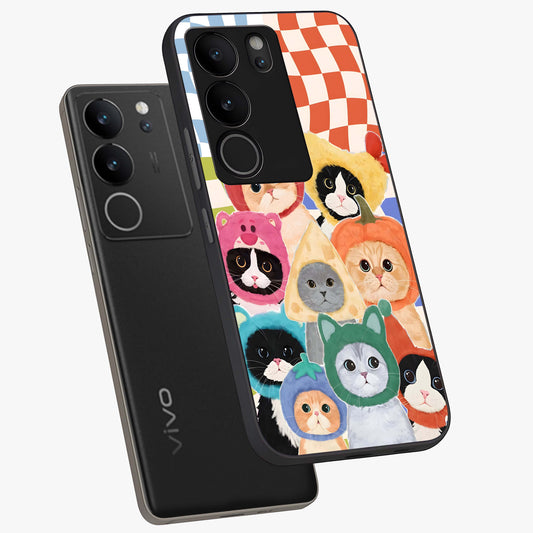 Cats in Fruits Glass Case For Vivo V29 Pro