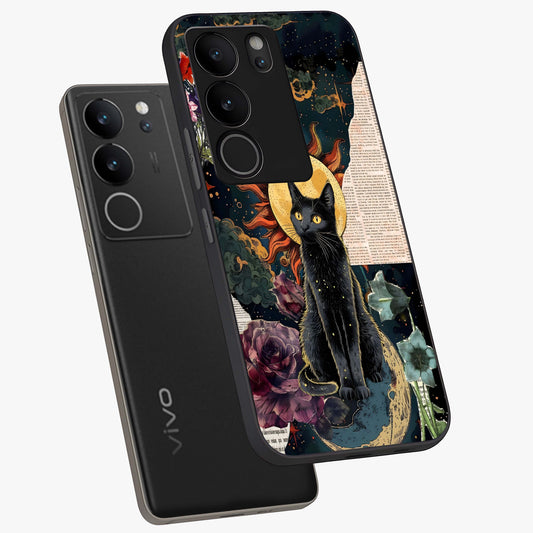 Celestial Black Cat Glass Case For Vivo V29 Pro