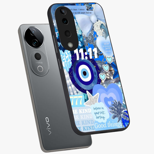 Aesthetic Blue Evil Eye Glass Case For Vivo V40