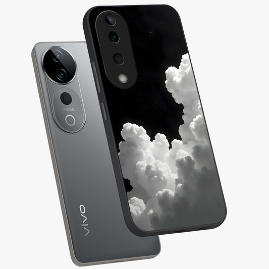 Black Background With White Cloud Glass Case For Vivo V40