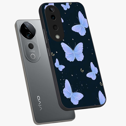 Butterfly With Stars Pattern Glass Case For Vivo V40