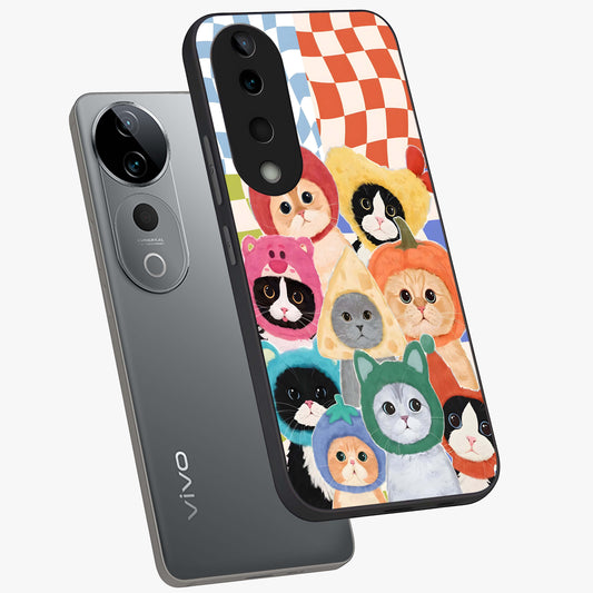 Cats in Fruits Glass Case For Vivo V40