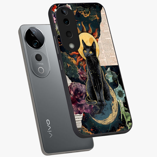 Celestial Black Cat Glass Case For Vivo V40