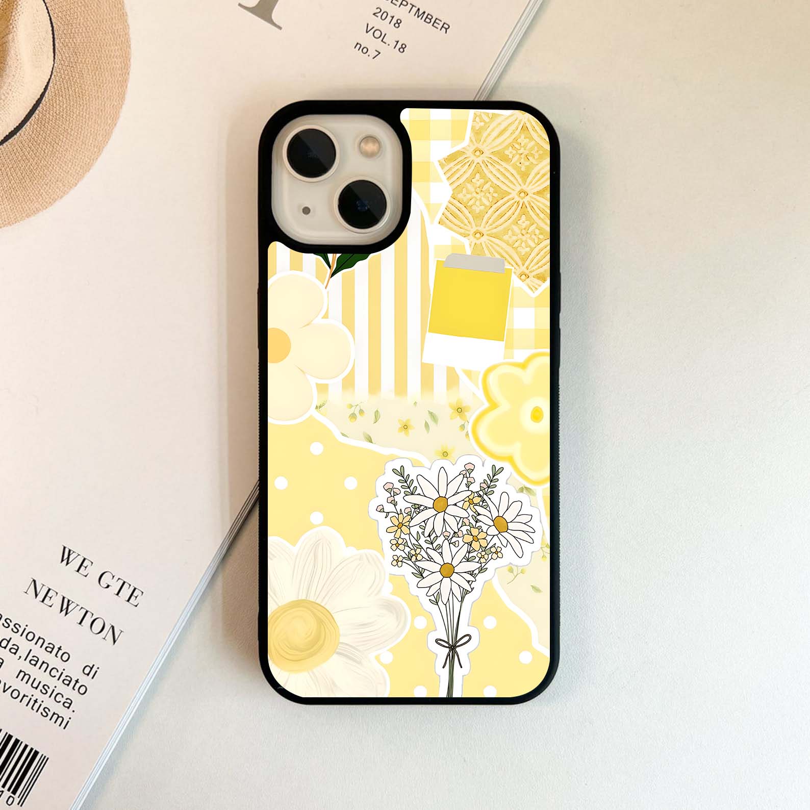 Aesthetic Yellow Floral Glass Case