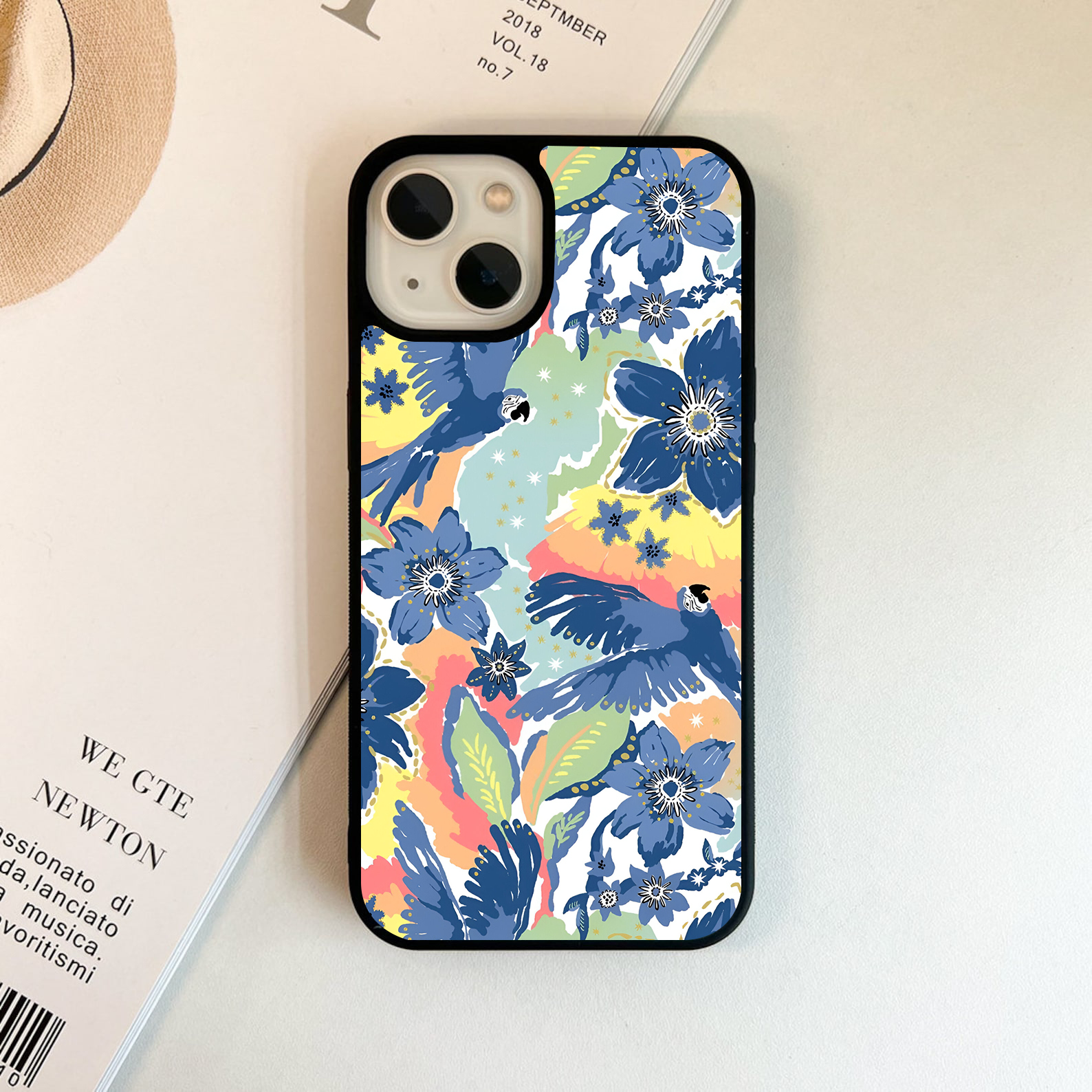 কাস্টমাইজড হোল্ডার সহ গ্রে এবং ব্লু ফ্লোরাল স্লিম কেস কভার