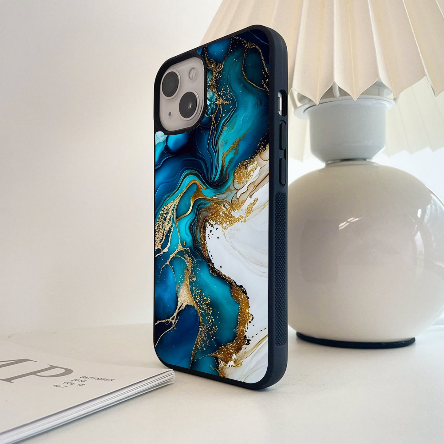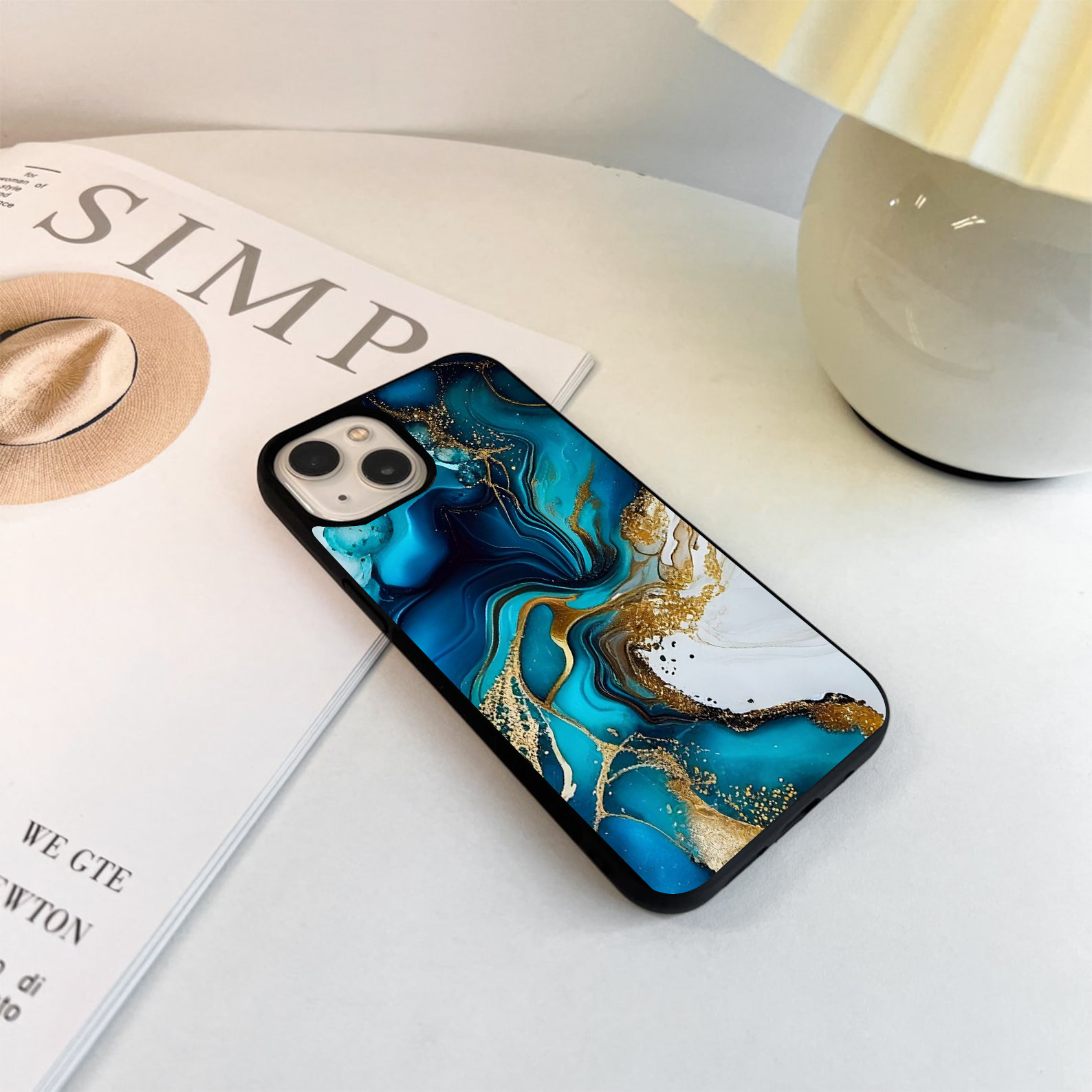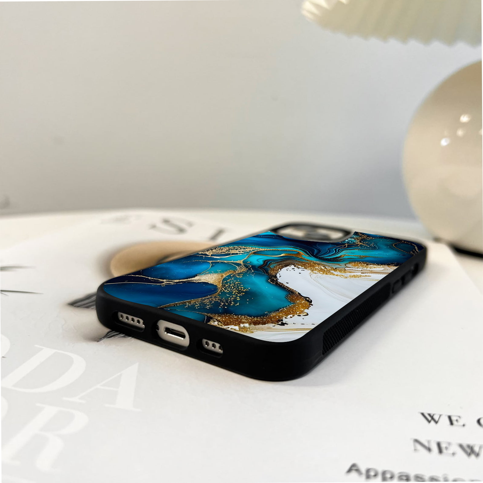 Glass Cases are just made beautiful without actual glitter or marble, The sides are silicon and back with Glossy Glass Finish.