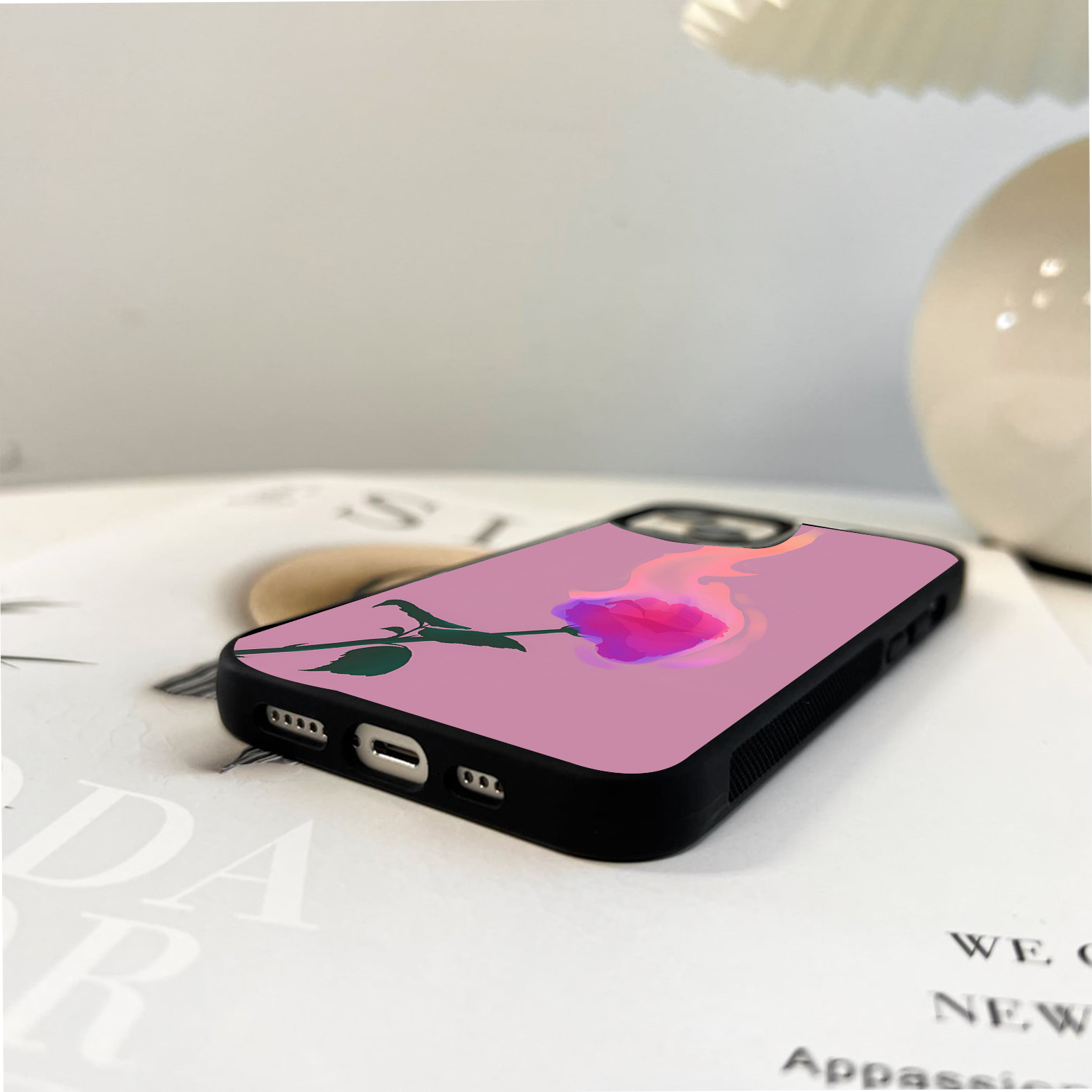 Aesthetic Love with Flower Glass Case