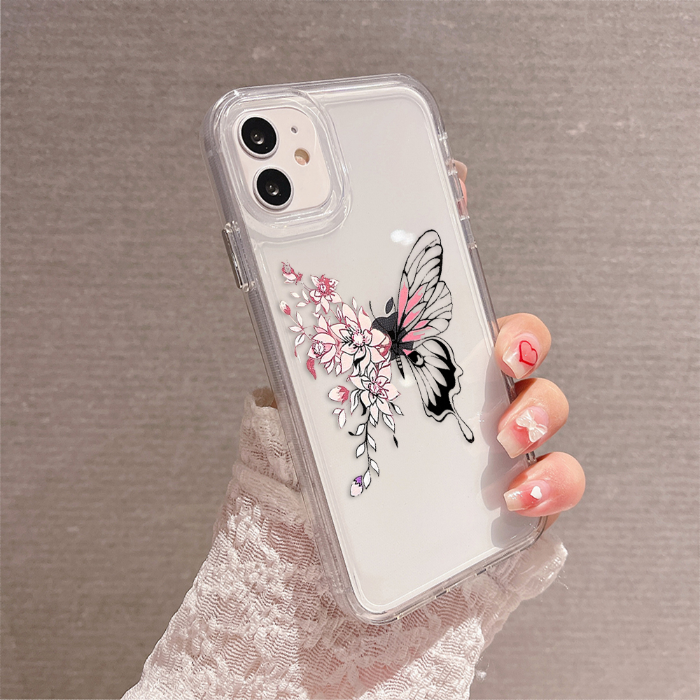 বাটারফ্লাই-ফ্লাওয়ার ক্লিয়ার সিলিকন কেস কভার