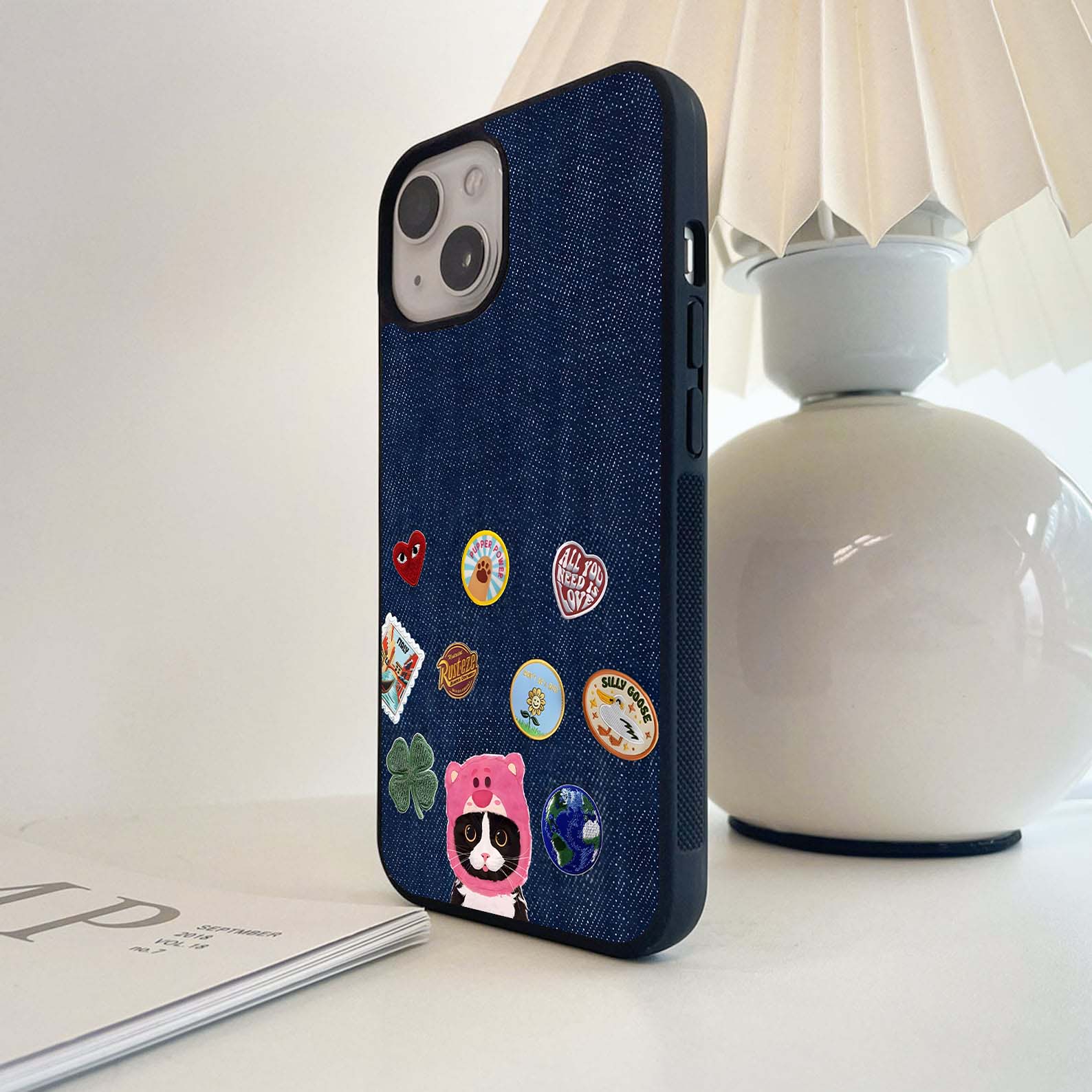 Denim Kitty Charm Glass Case