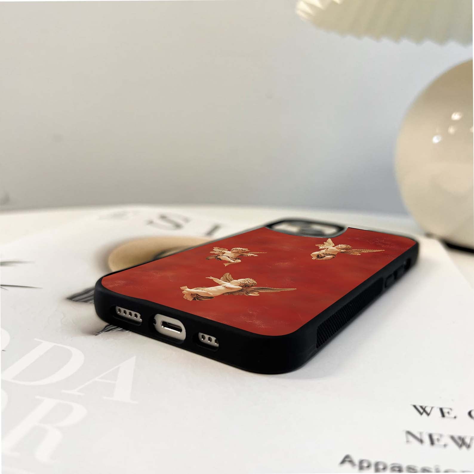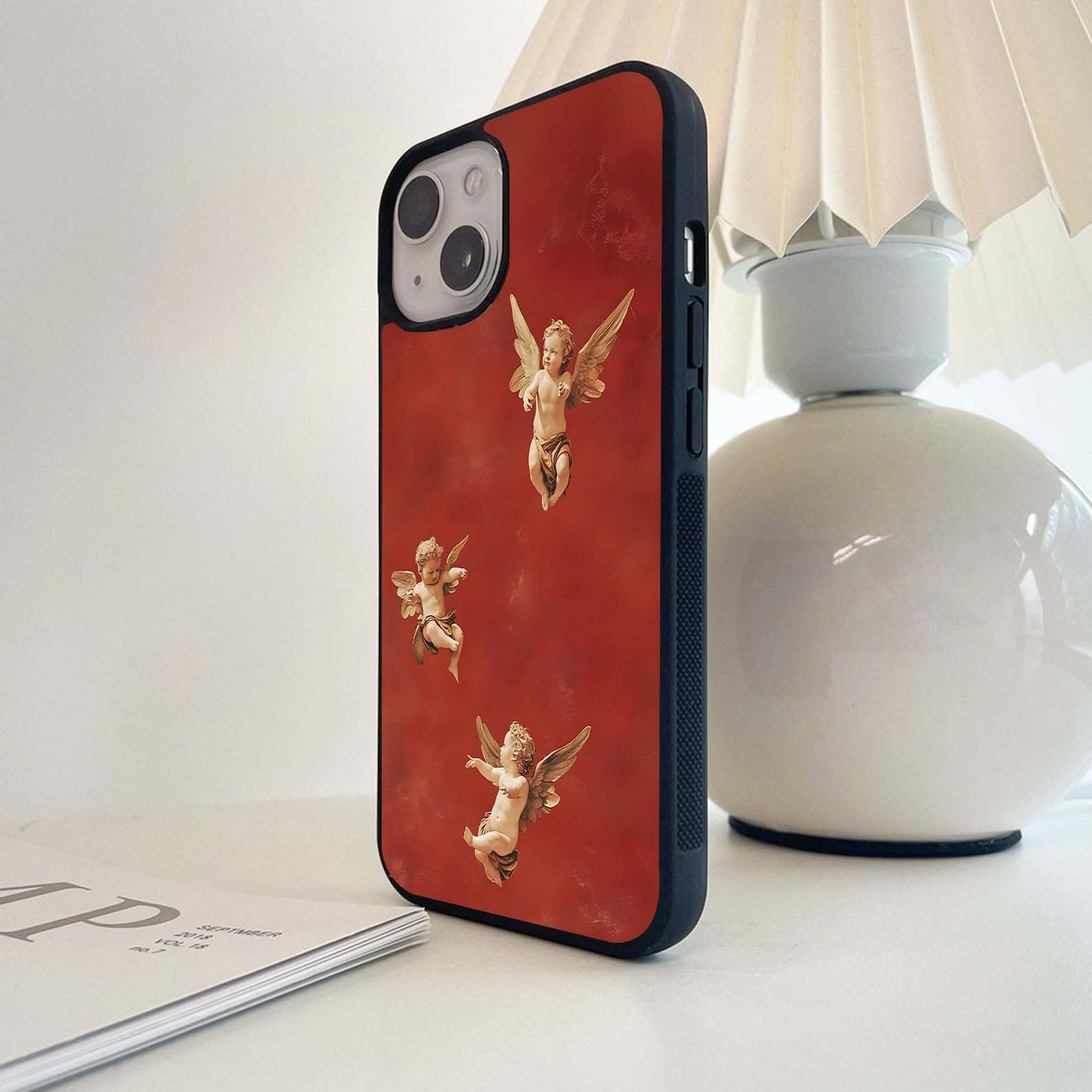 Flying Angel With Maroon Background Glass Case
