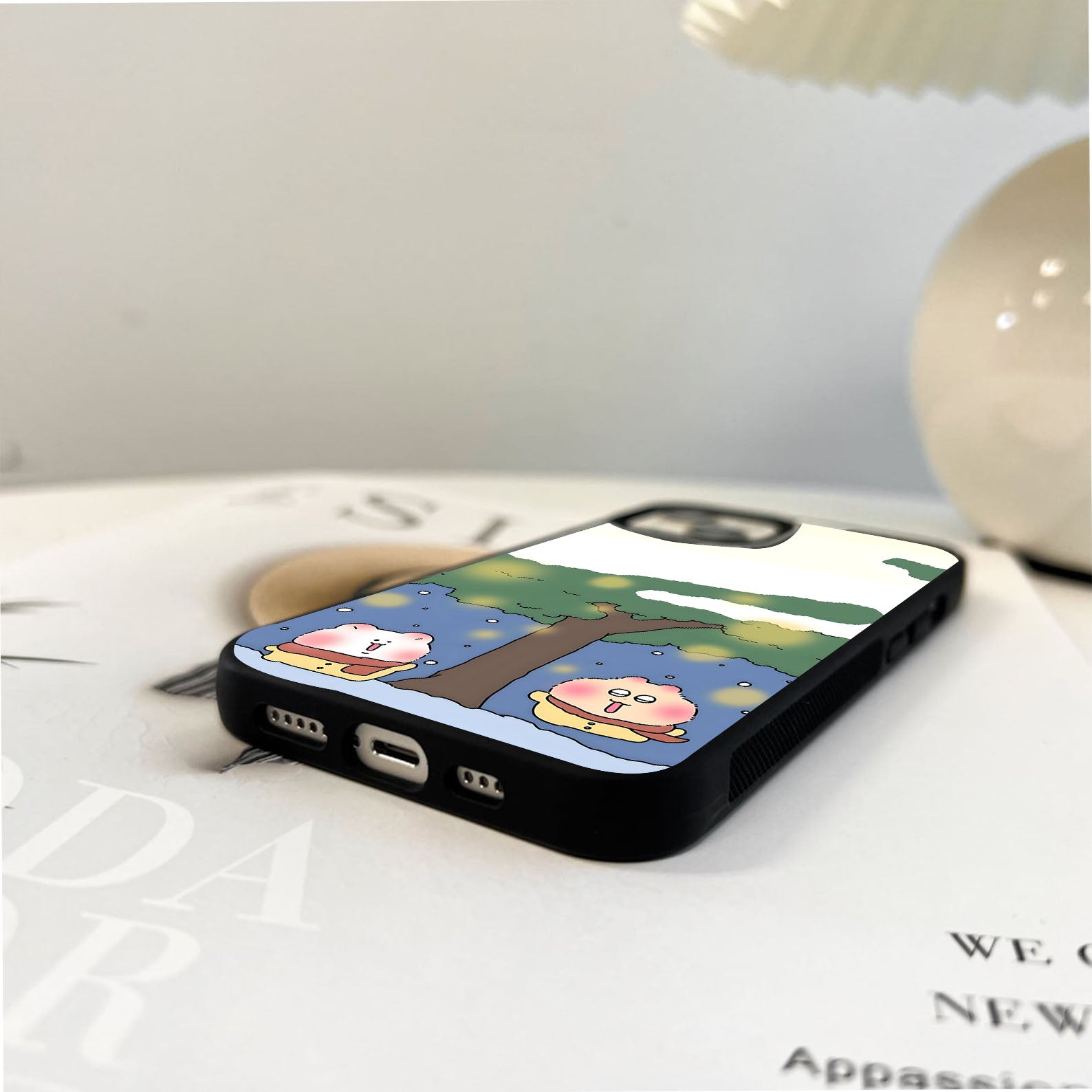 Cute Couple V2 Custom Name Glass Case ( 2 FREE Keychains )