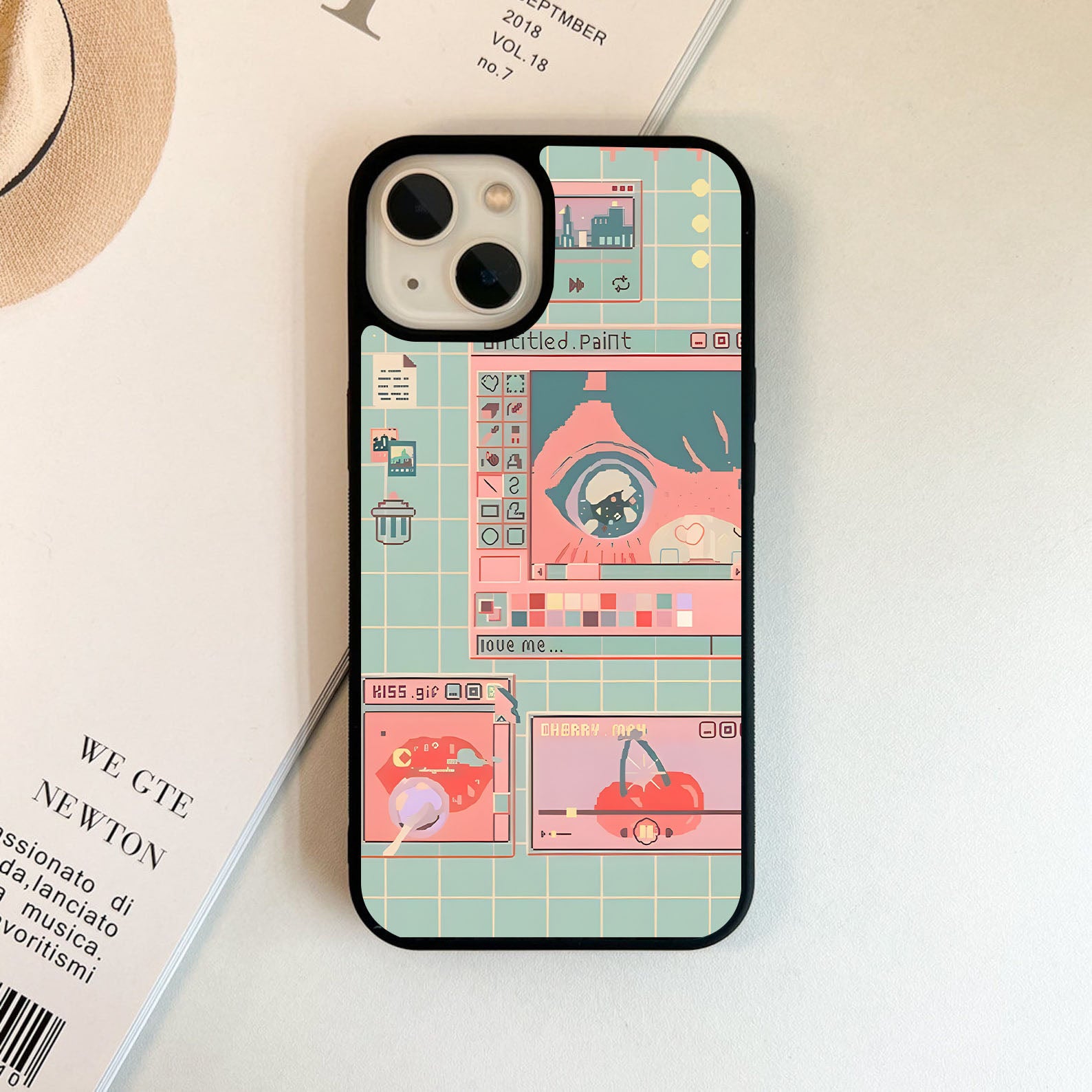 Cute Couple V2 Custom Name Glass Case ( 2 FREE Keychains )