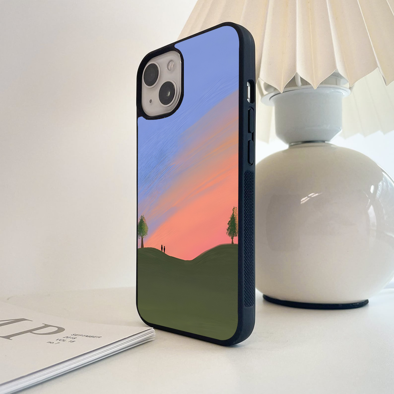 Cute Couple V2 Custom Name Glass Case ( 2 FREE Keychains )