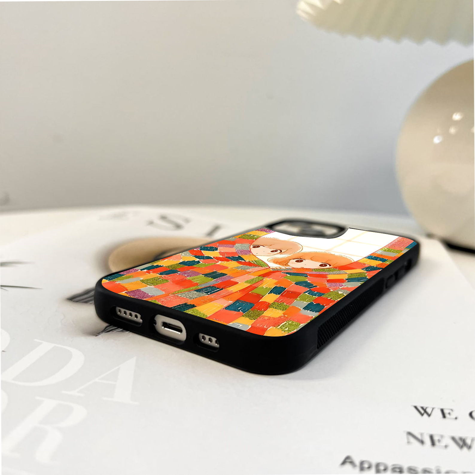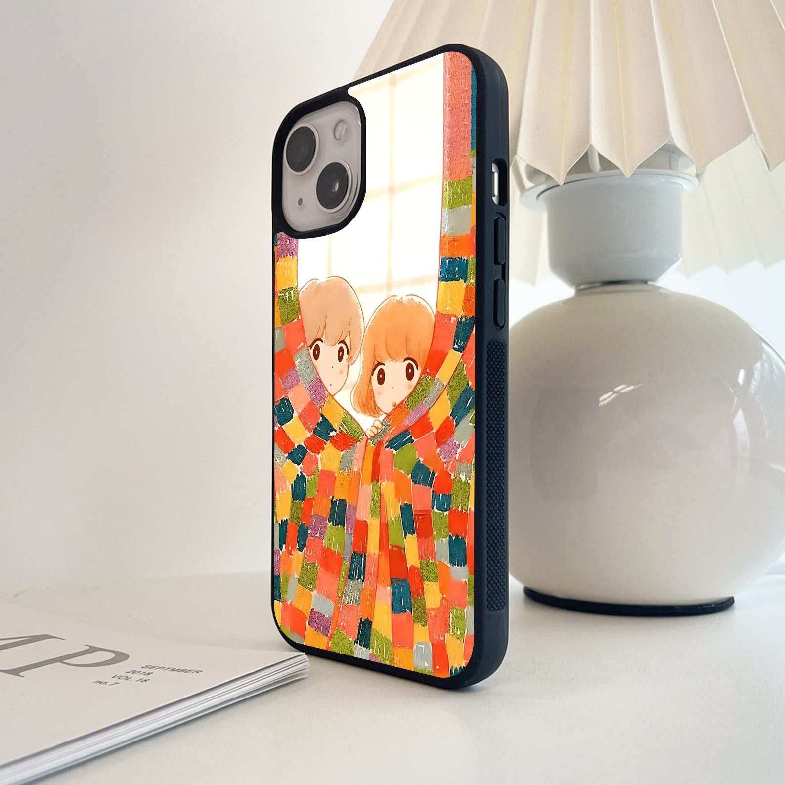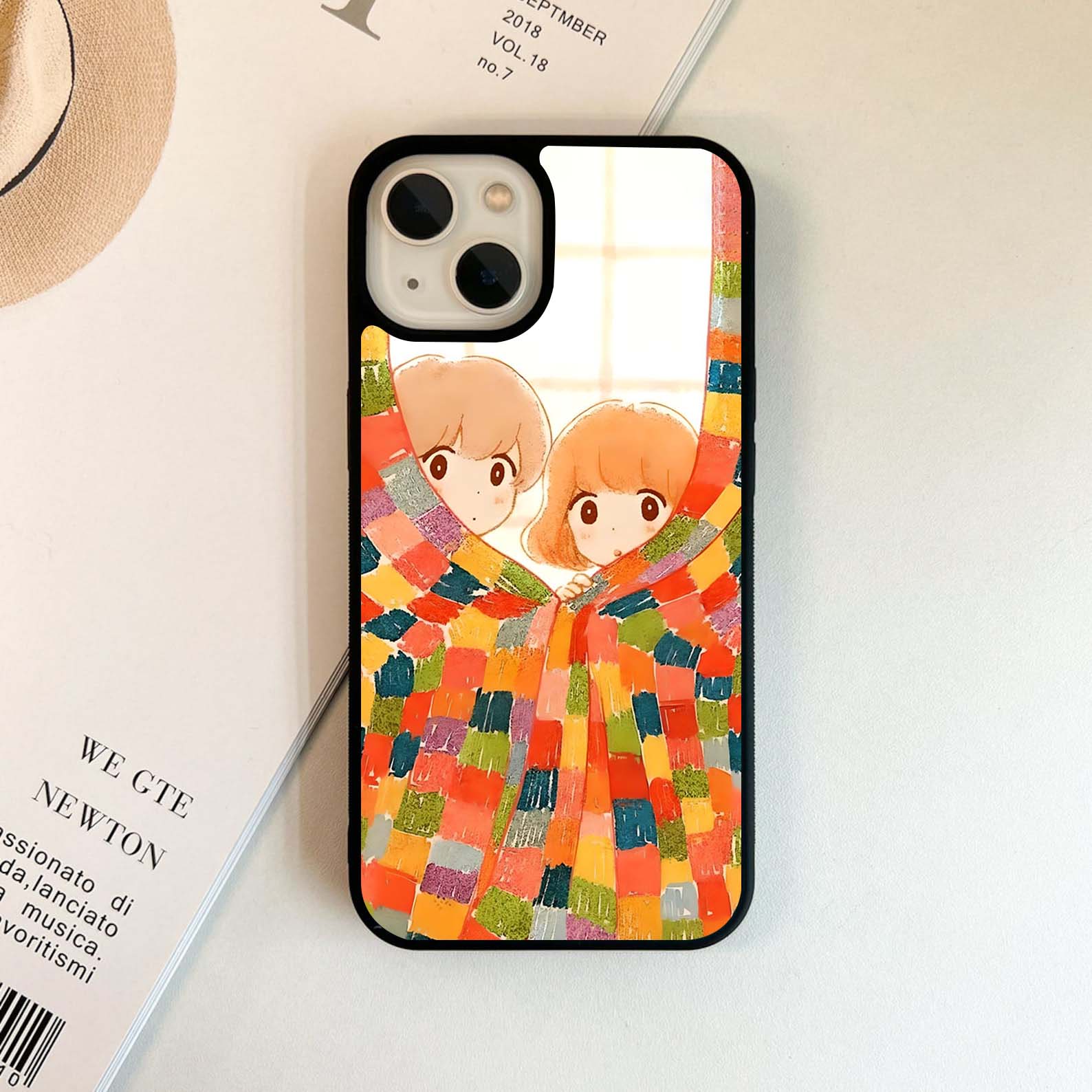 Cute Couple V2 Custom Name Glass Case ( 2 FREE Keychains )