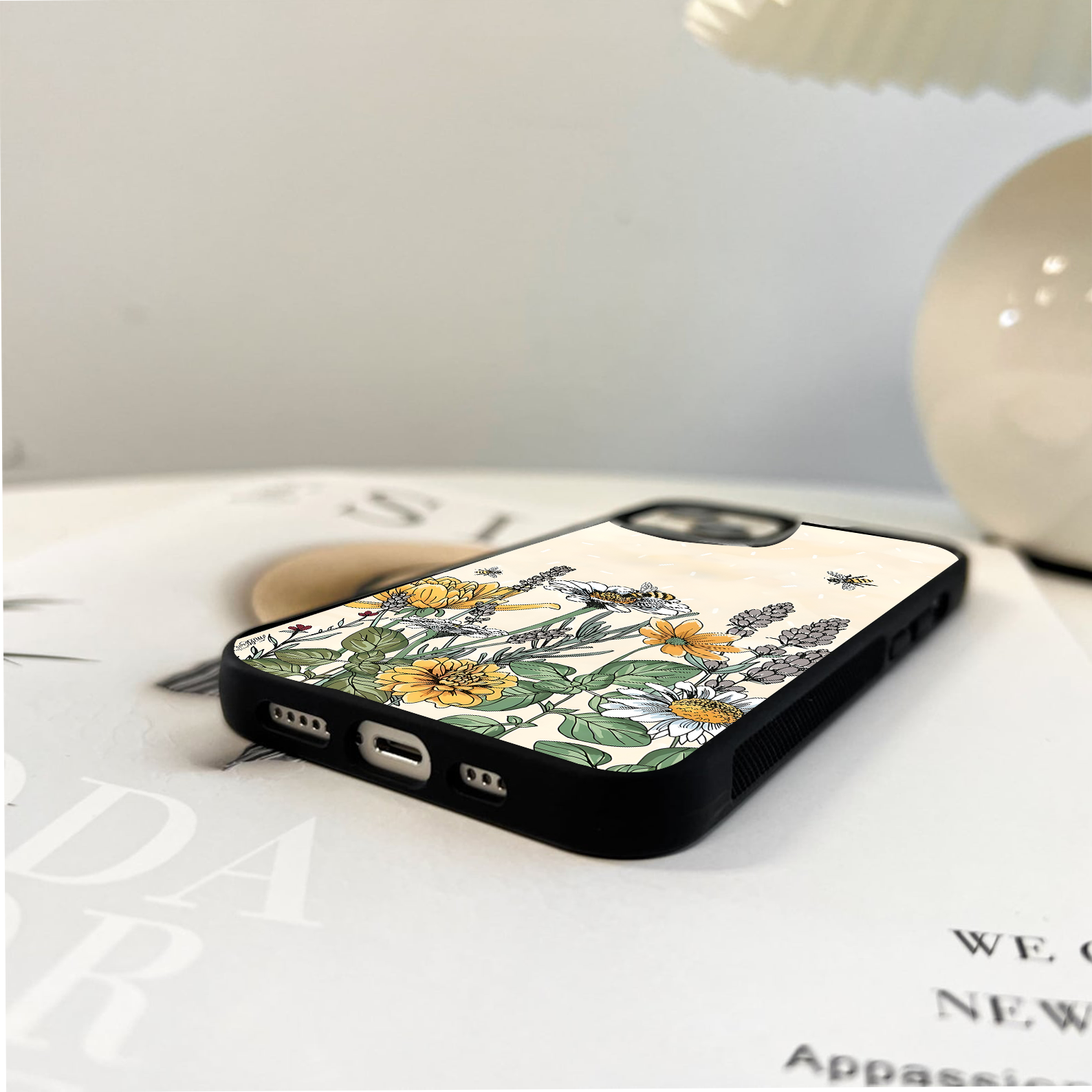 Aesthetic Yellow Floral Glass Case