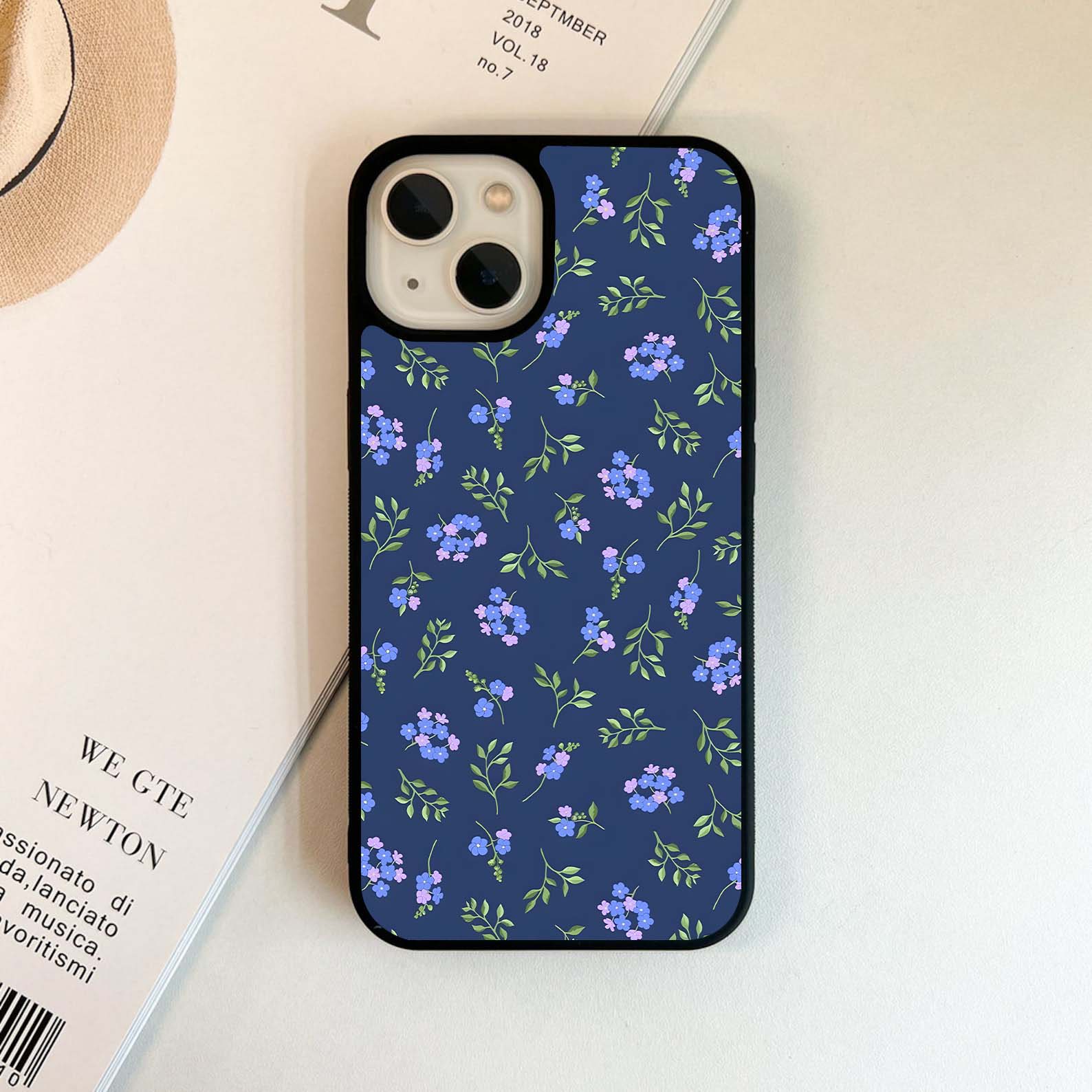 কাস্টমাইজড হোল্ডার সহ গ্রে এবং ব্লু ফ্লোরাল স্লিম কেস কভার