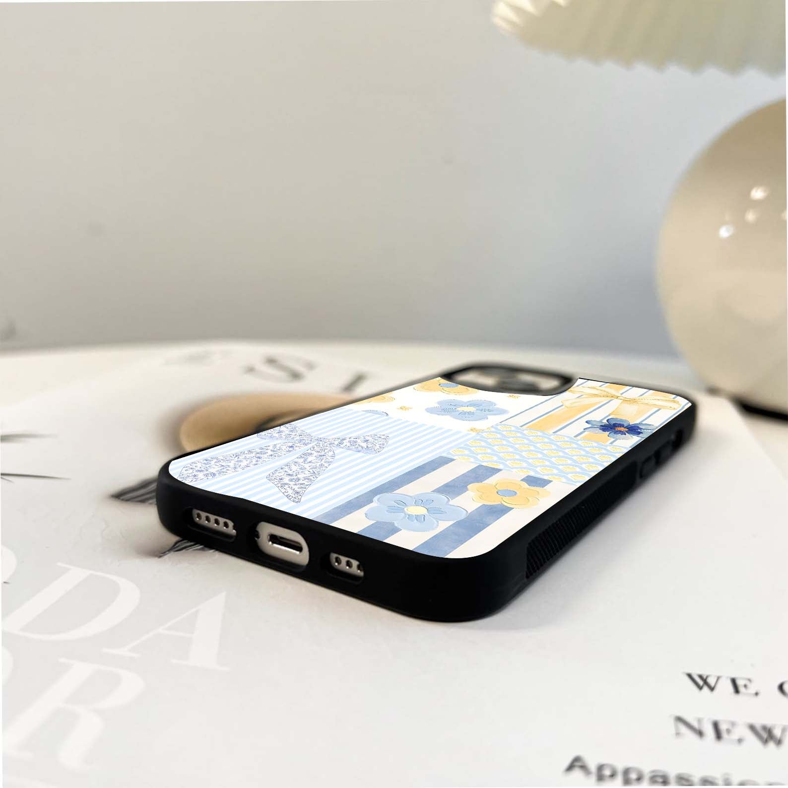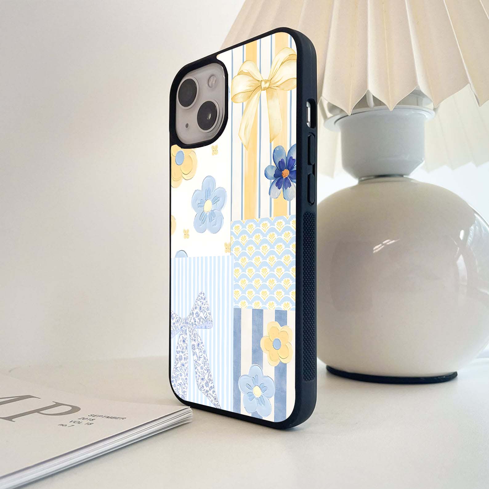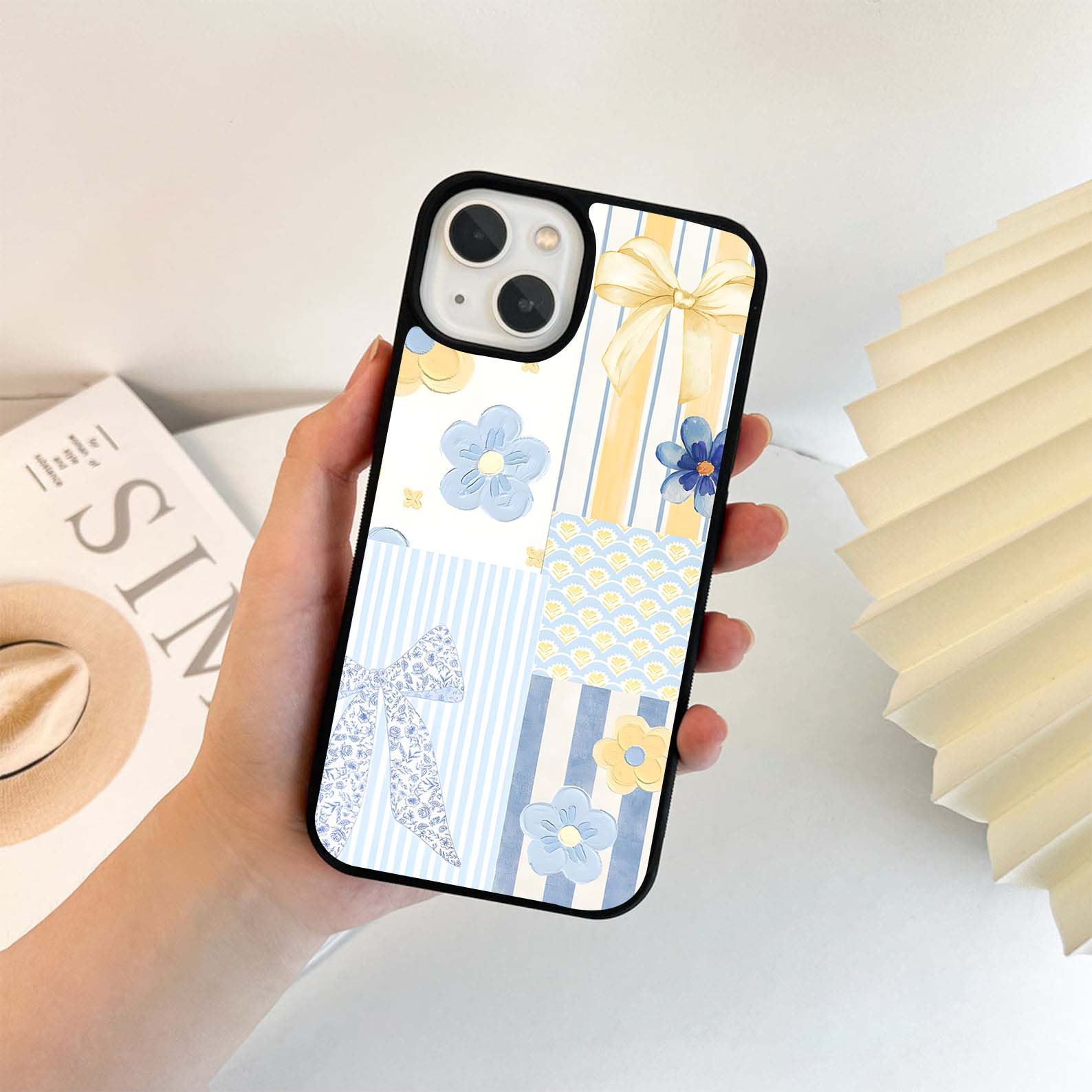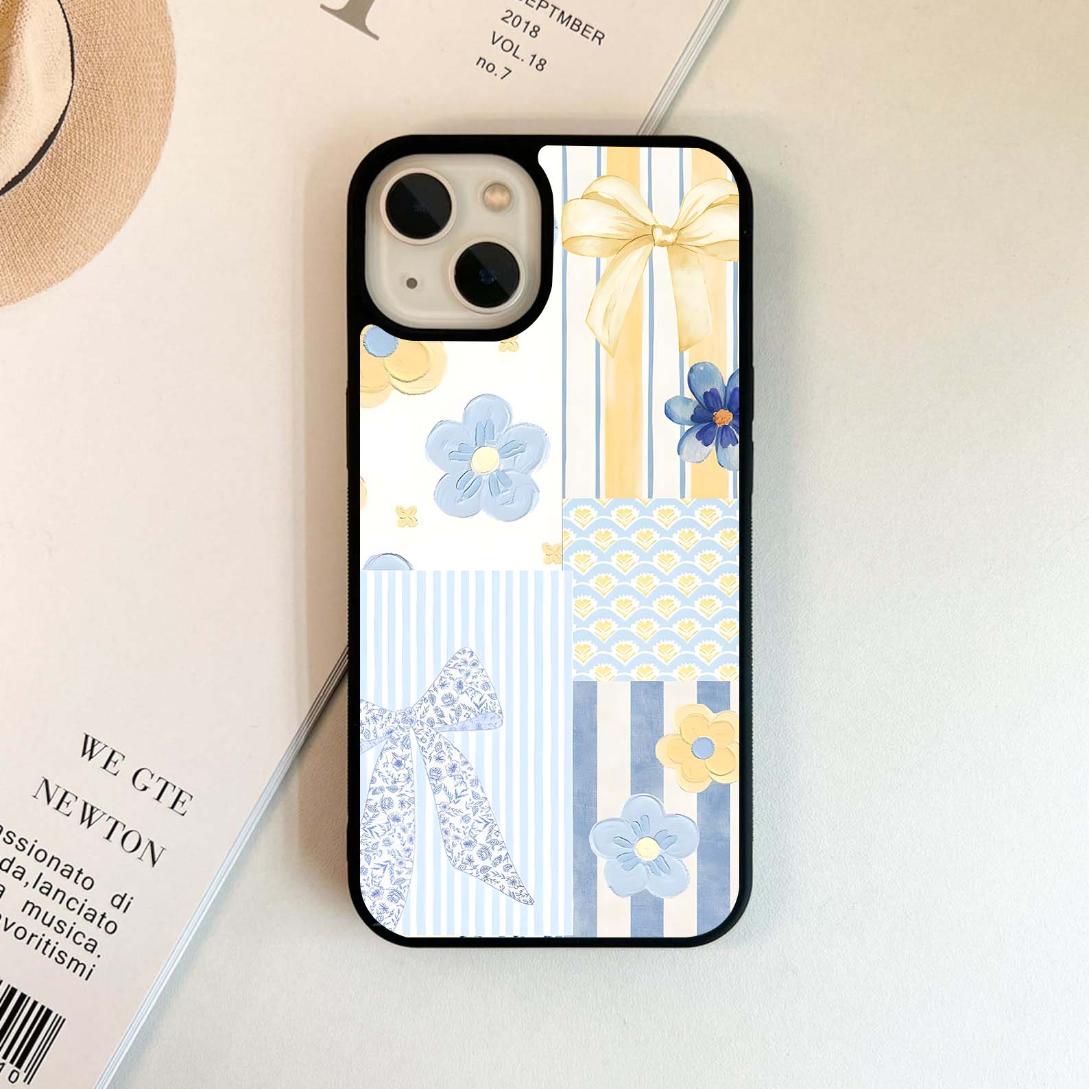 কাস্টমাইজড হোল্ডার সহ গ্রে এবং ব্লু ফ্লোরাল স্লিম কেস কভার