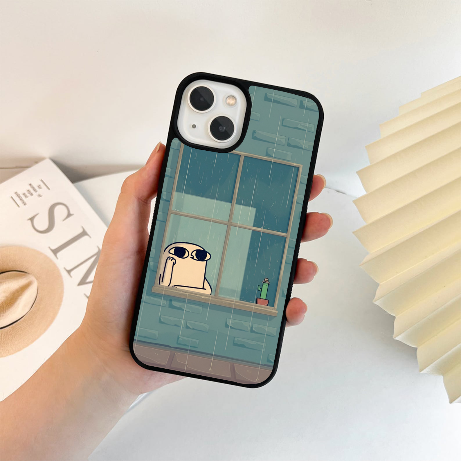 Cute Couple V2 Custom Name Glass Case ( 2 FREE Keychains )