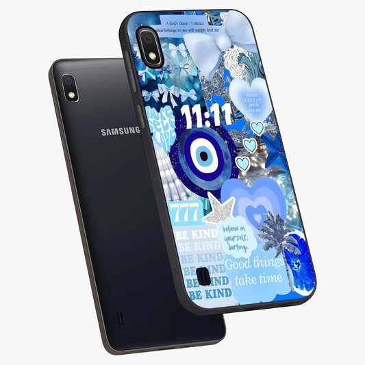Aesthetic Blue Evil Eye Glass Case For Samsung Galaxy A10