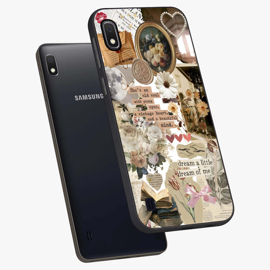 Aesthetic Brown Vintage Collage Glass Case For Samsung Galaxy A10