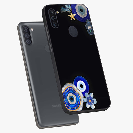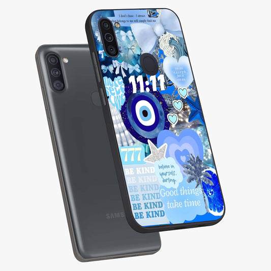 Aesthetic Blue Evil Eye Glass Case For Samsung Galaxy A11