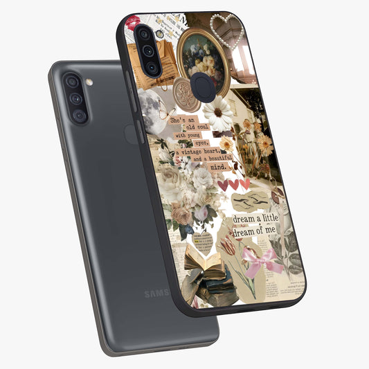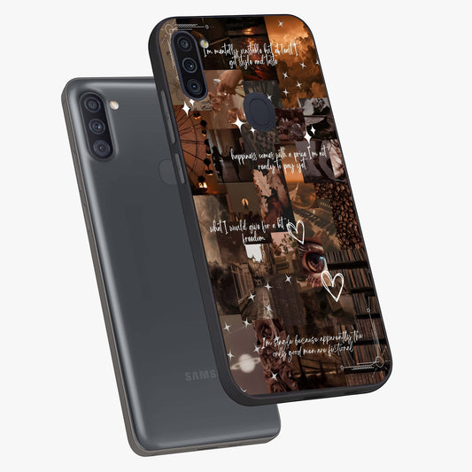 Aesthetic Brown Vintage Collage Glass Case For Samsung Galaxy A11