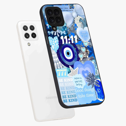 Aesthetic Blue Evil Eye Glass Case For Samsung Galaxy A12