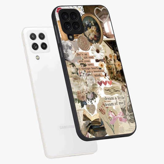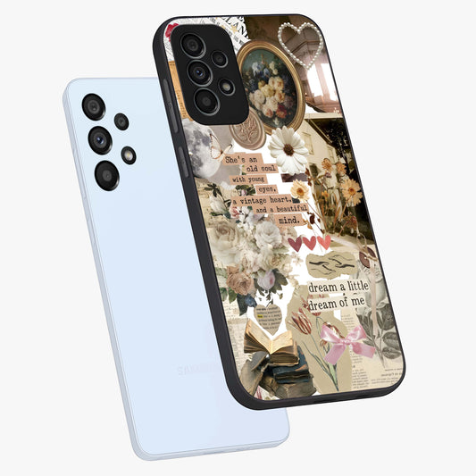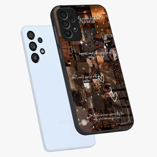 Aesthetic Brown Vintage Collage Glass Case For Samsung Galaxy A13 5G