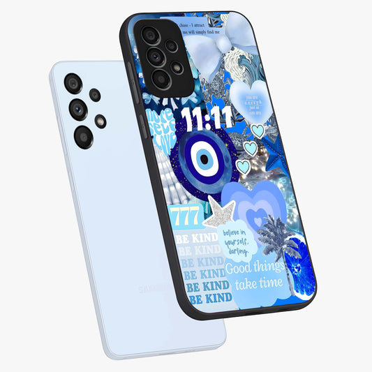 Aesthetic Blue Evil Eye Glass Case For Samsung Galaxy A13 5G