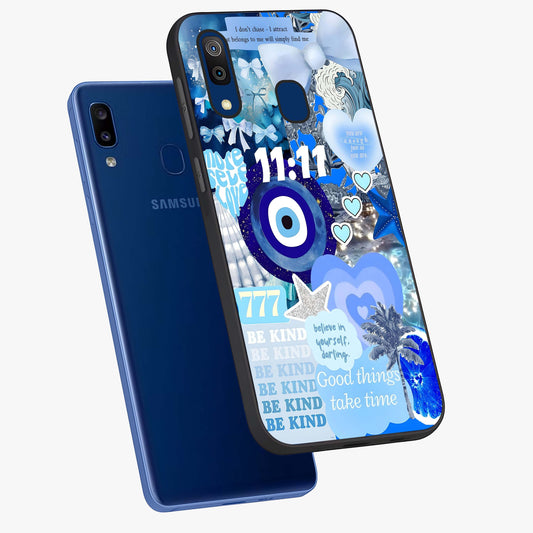 Aesthetic Blue Evil Eye Glass Case For Samsung Galaxy A20