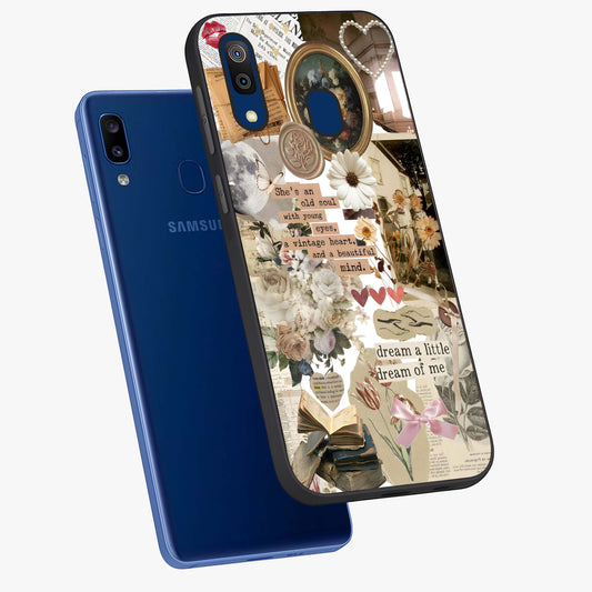 Aesthetic Brown Vintage Collage Glass Case For Samsung Galaxy A20
