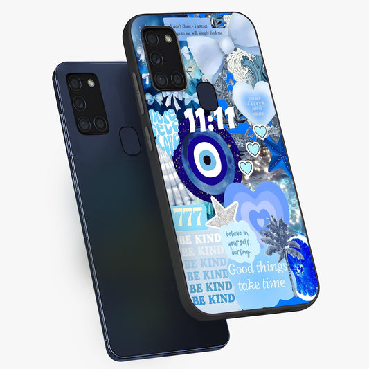 Aesthetic Blue Evil Eye Glass Case For Samsung Galaxy A21S