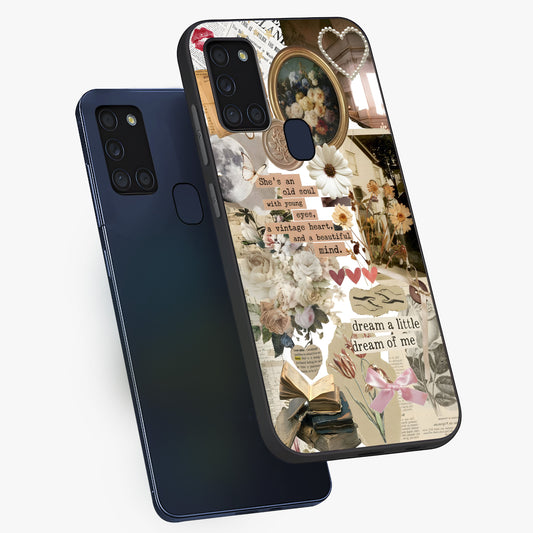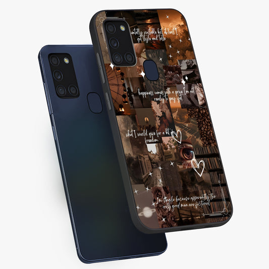 Aesthetic Brown Vintage Collage Glass Case For Samsung Galaxy A21S
