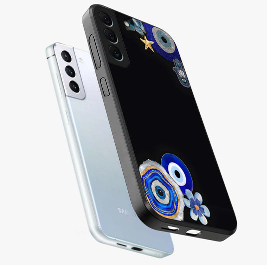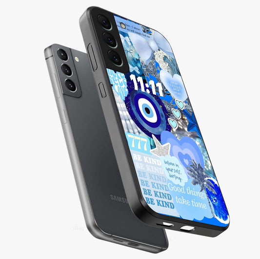 Aesthetic Blue Evil Eye Glass Case For Samsung Galaxy S21 Plus