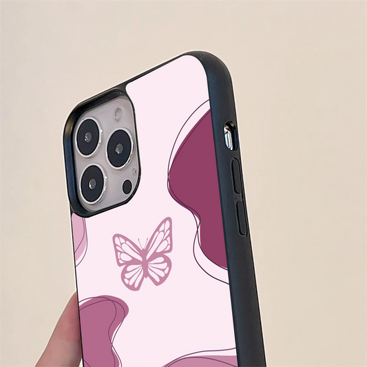 Aesthetic Pinkish Custom Name Butterfly Glass Case
