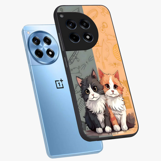 Cozy Cat Duo Glass Case for OnePlus 12R |1+12R